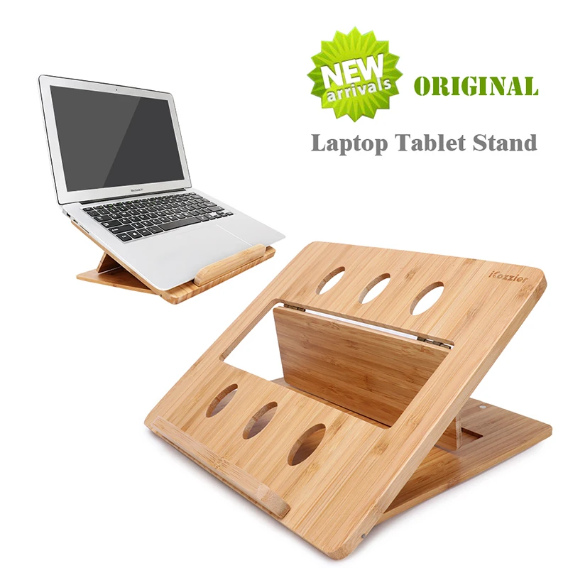 BEST SELLER iCozzier Original Bamboo Foldable Laptop Stand Holder Adjustable Notebook Computer Tablet Home Desk